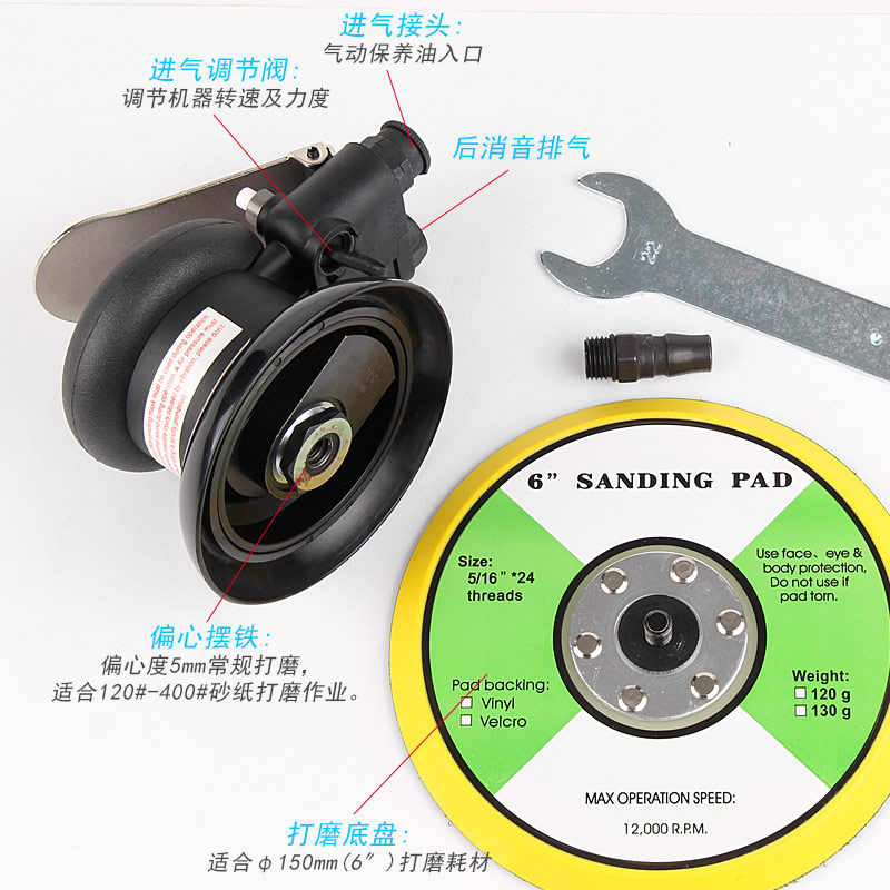 --粗磨偏心度幅度為9.5mm,扭力大,切削能力更大,適合重力打磨。工件一般幅面較大,要求打磨速度快,粗糙的打磨表面,如:玻璃鋼,UV,原子灰等材質(zhì)比較硬的工件,所用砂紙規(guī)格120#以下;