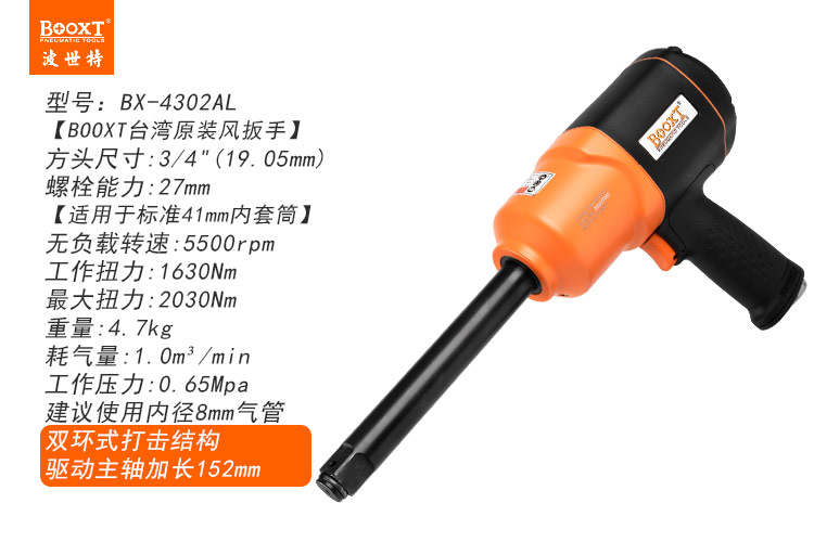 東莞市強勁五金工具有限公司提供臺灣BOOXT波世特品牌氣動工具,加長軸小風炮BX-4302AL1廠家直銷,首件享特價。咨詢熱線:4008301980
