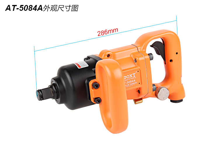 • 產品參數: 螺栓能力:25-30mm; 方頭尺寸:3/4"; 2秒 扭力:1500Nm; 5秒 扭力:2450Nm; 空載轉速:7500rpm; 全 長:286mm; 重 量:4.5kg; 噪 音 值:99.8dB(A); 耗 氣 量:0.6M3/分鐘; 使用工作氣壓:0.65Mpa; 推薦使用內徑13mm氣管; 平時使用應多加氣動油保養