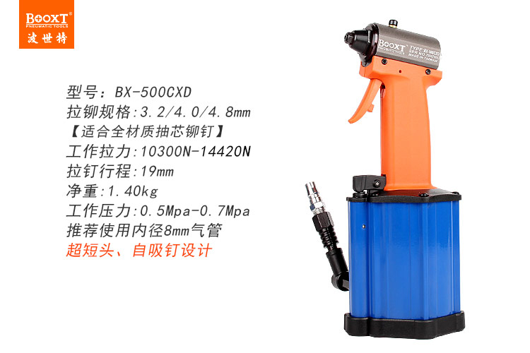 東莞市強勁五金工具有限公司提供臺灣BOOXT波世特品牌氣動工具,超短氣動拉鉚槍BX-500CXD廠家直銷,首件享特價。咨詢熱線:4008301980