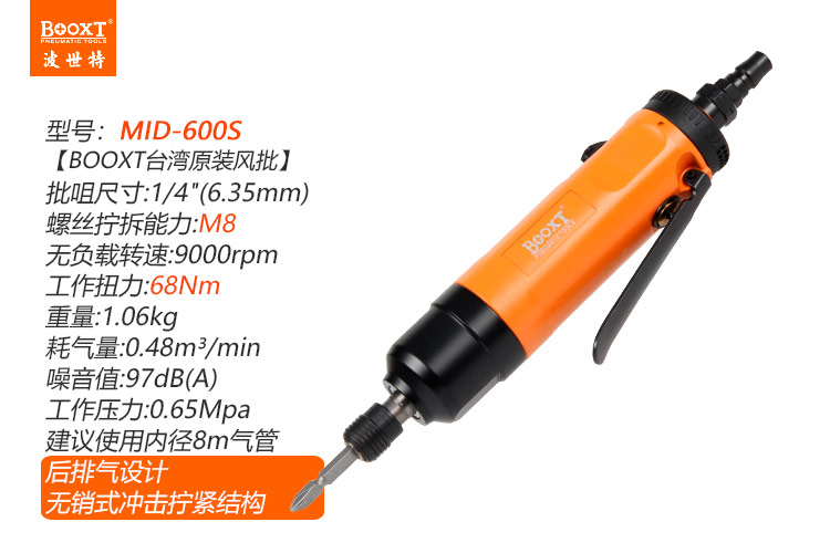 東莞市強勁五金工具有限公司提供臺灣BOOXT波世特品牌氣動工具,無銷式強力風批MID-600S廠家直銷,首件享特價。咨詢熱線:4008301980