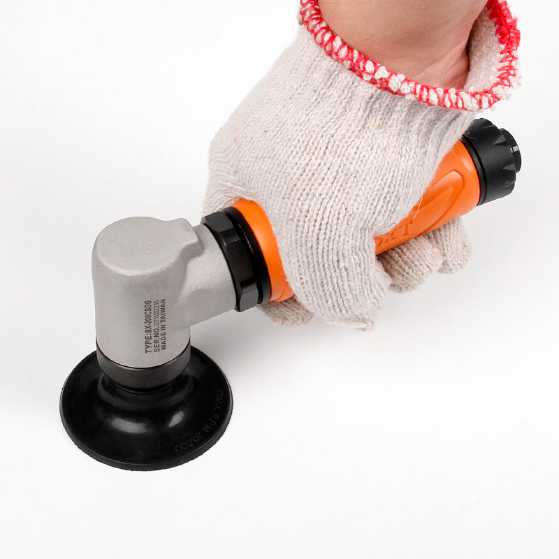 1.帶偏心式,裝砂紙打磨出來的效果是“霧”狀,帶細小亂絲的小紋路,適合后工藝需要做噴砂、烤漆,增加附著力。(標配一般為3mm偏擺,可選配1.5mm,0.75mm偏擺度)