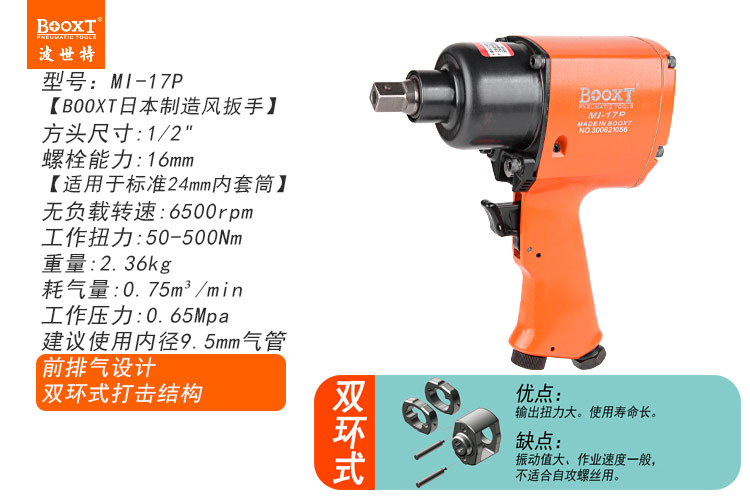 日本小風炮特點:(重力壓鑄外殼,強度更高不變形,提高耐用度)
