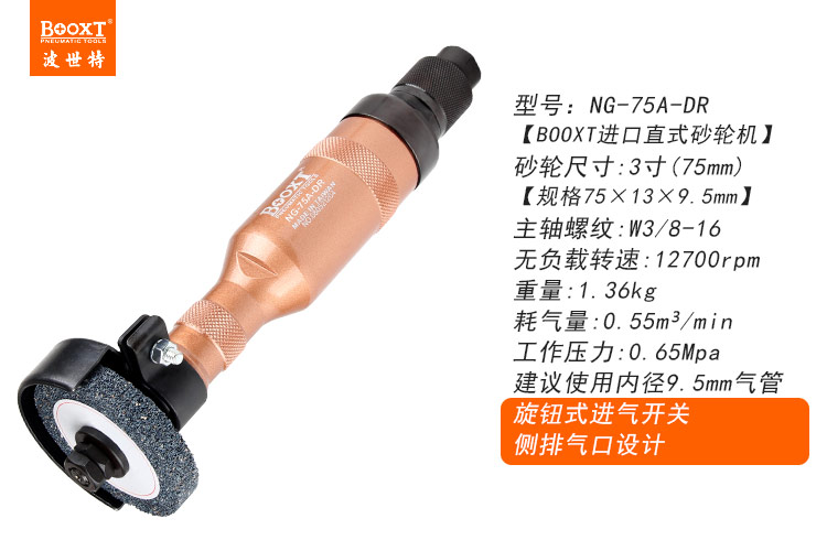 東莞市強勁五金工具有限公司提供臺灣BOOXT波世特品牌氣動工具,直柄氣動砂輪機NG-75A-DR廠家直銷,首件享特價。咨詢熱線:4008301980