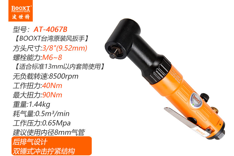 東莞市強勁五金工具有限公司提供臺灣BOOXT波世特品牌氣動工具,彎頭氣動扳手AT-4067B廠家直銷,首件享特價。咨詢熱線:4008301980