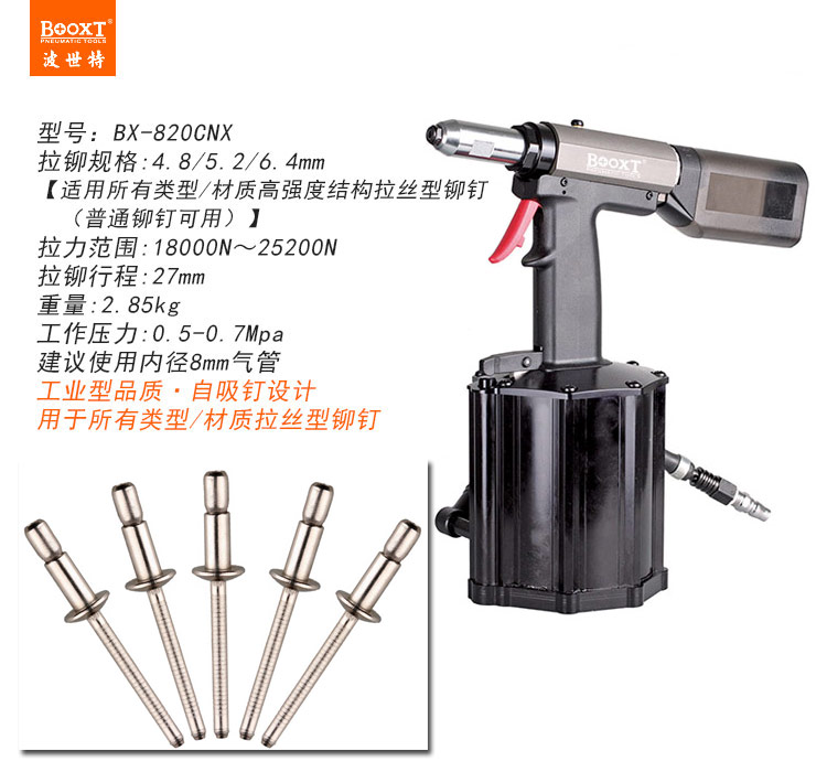 東莞市強(qiáng)勁五金工具有限公司提供臺(tái)灣BOOXT波世特品牌氣動(dòng)工具,自吸式氣動(dòng)拉絲鉚釘槍BX-820CNX廠家直銷,首件享特價(jià)。咨詢熱線:4008301980