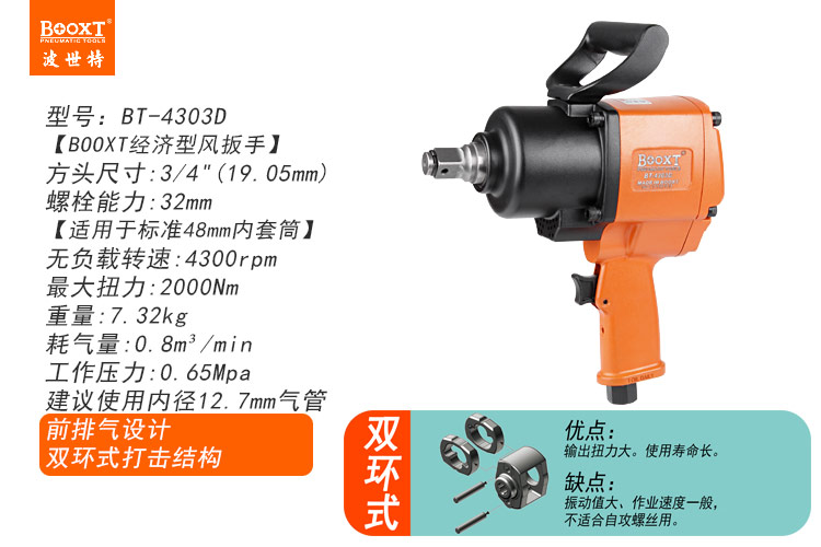 東莞市強勁五金工具有限公司提供臺灣BOOXT波世特品牌氣動工具,中型氣動扳手BT-4303D廠家直銷,首件享特價。咨詢熱線:4008301980