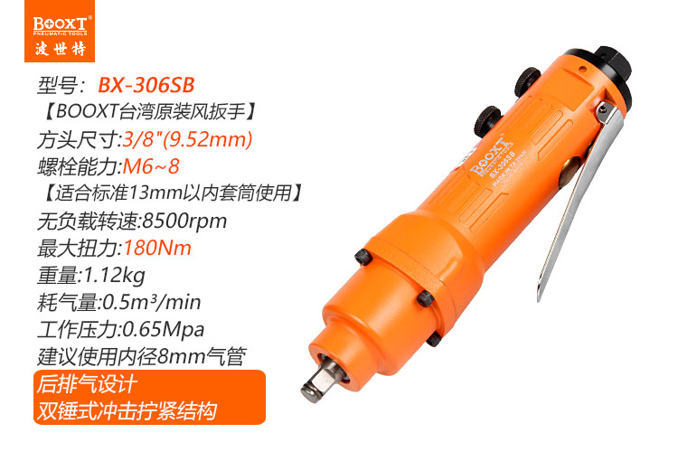 東莞市強勁五金工具有限公司提供臺灣BOOXT波世特品牌氣動工具,直型氣動扳手BX-306SB廠家直銷,首件享特價。咨詢熱線:4008301980