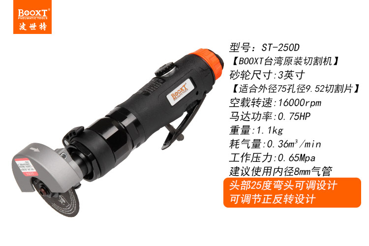 東莞市強勁五金工具有限公司提供臺灣BOOXT波世特品牌氣動工具,可調角度氣動切割機ST-250D廠家直銷,首件享特價。咨詢熱線:4008301980