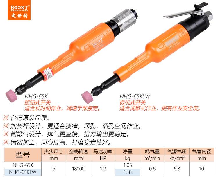 東莞市強勁五金工具有限公司提供臺灣BOOXT波世特品牌氣動工具,加長氣動打磨機NHG-65KLW廠家直銷,首件享特價。咨詢熱線:4008301980