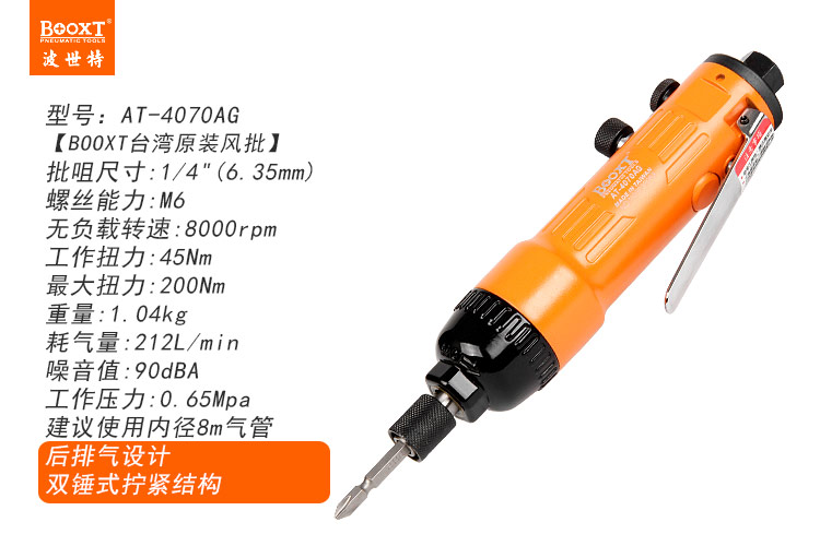 東莞市強勁五金工具有限公司提供臺灣BOOXT波世特品牌氣動工具,直柄風批AT-4070AG廠家直銷,首件享特價。咨詢熱線:4008301980