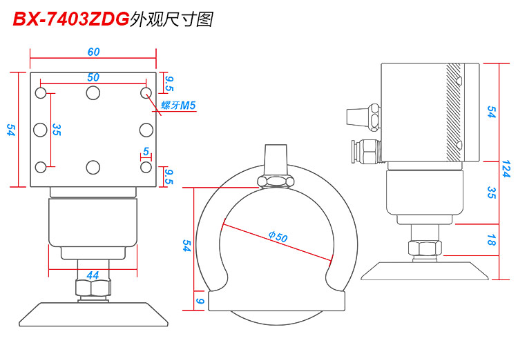 底盤(pán)尺寸:50mm/75mm (2寸/3寸)