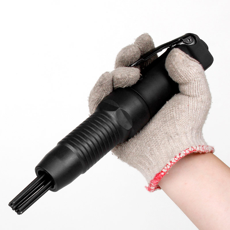 • 產品參數: 沖擊頻率:4800bpm 除銹針數量:12pcs 除銹針尺寸:M3*125L 耗 氣 量:0.2m3/min 全 長:280mm 凈 重:1.04kg 噪 音 值:89db(A) 【專業型】