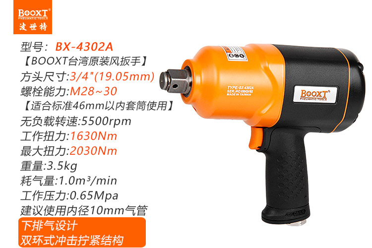 東莞市強勁五金工具有限公司提供臺灣BOOXT波世特品牌氣動工具,中型風炮BX-4302A廠家直銷,首件享特價。咨詢熱線:4008301980