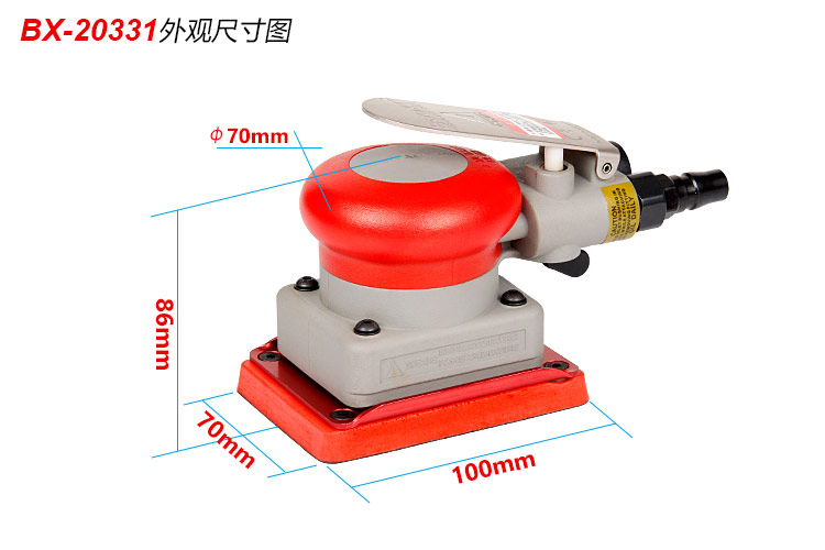 • 產(chǎn)品參數(shù): 底盤尺寸:75*100mm 空載轉(zhuǎn)數(shù):10000rpm 偏擺直徑:3mm 工具高度:86mm 重 量:0.66kg 耗 氣 量:0.53m3/min 【經(jīng)濟型】